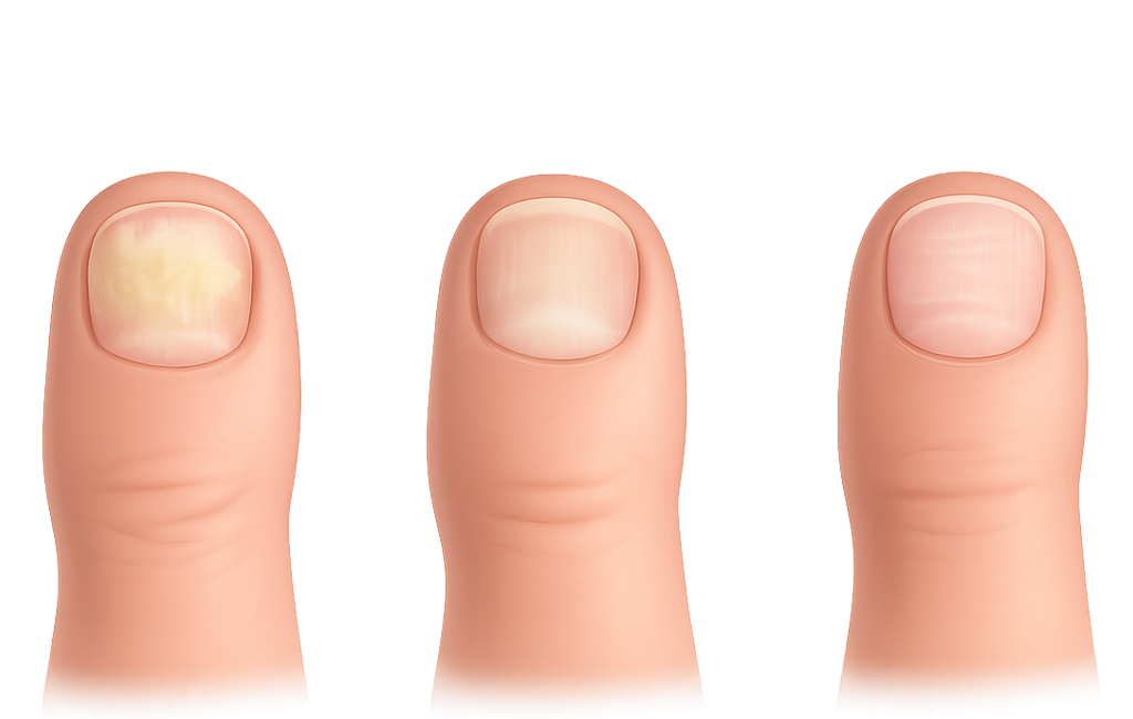 La uña crece lentamente, por lo que la mejoría estética se aprecia con el paso de las semanas. La regeneración completa puede tardar varios meses.